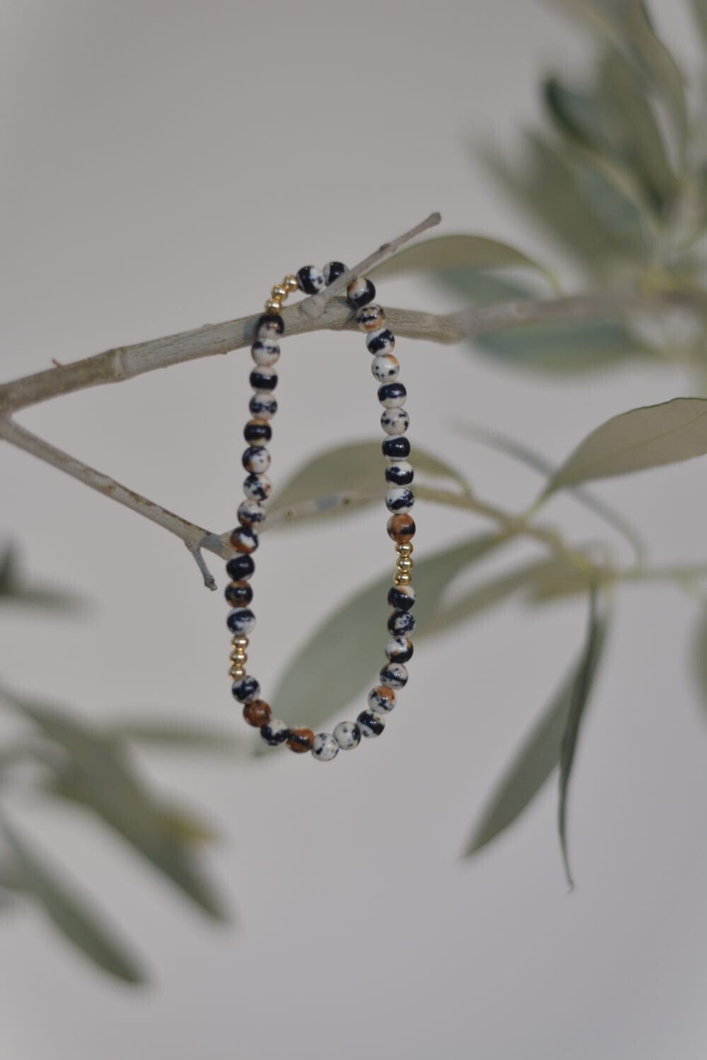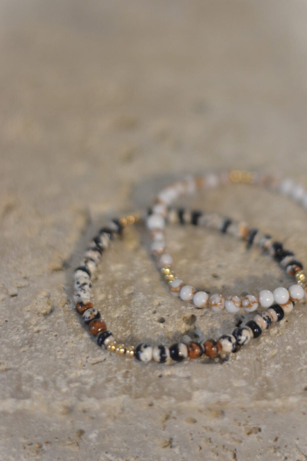 Steinperlen schwarz weiß - Armkette